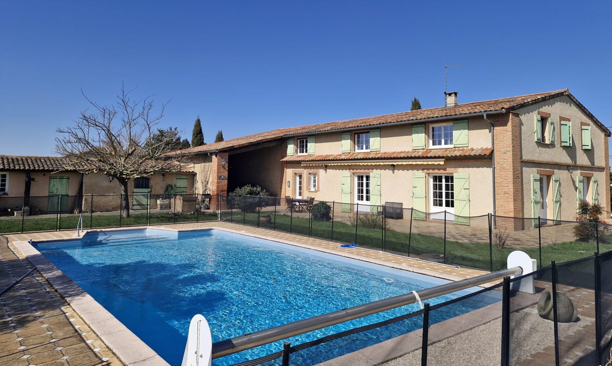 - Une piscine 10X5 accessible en saison, sécurisée par des barrières et partagée avec notre famille.